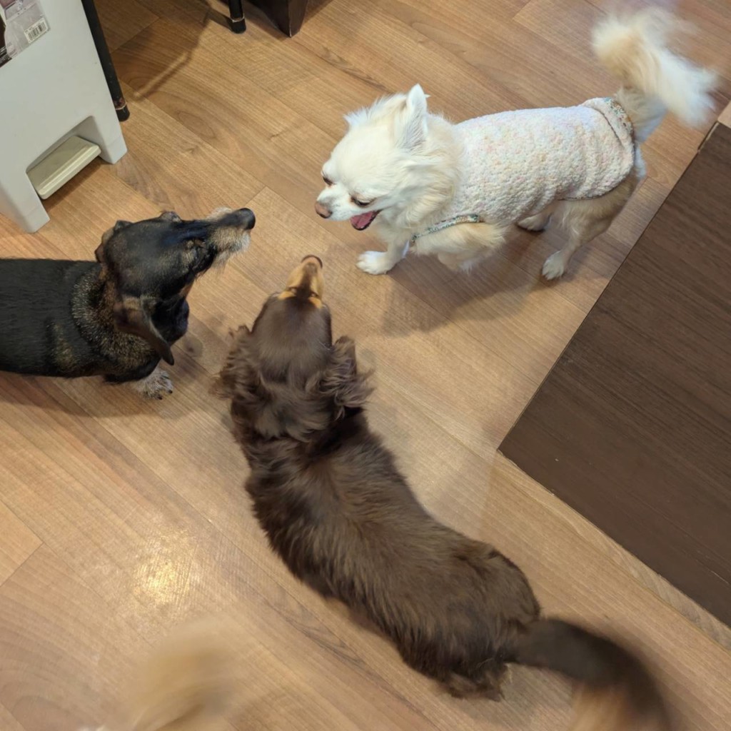 M.ダックスの翠ちゃんとラナちゃんとカルナちゃん、