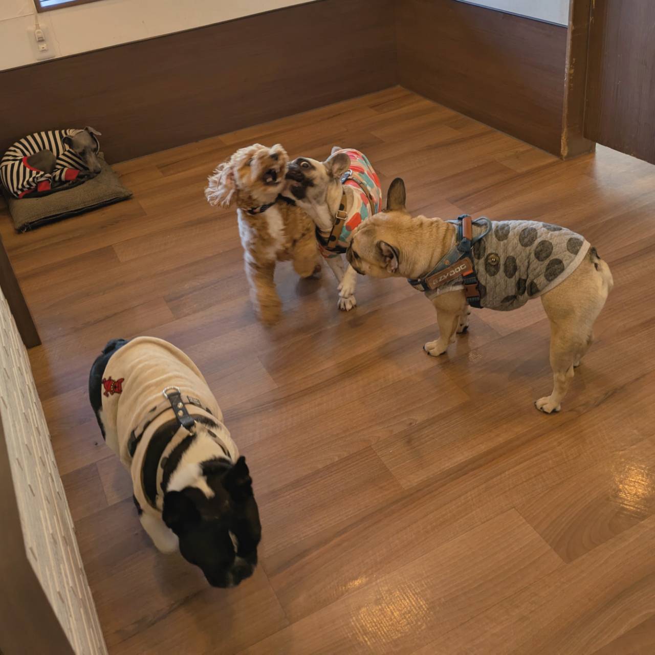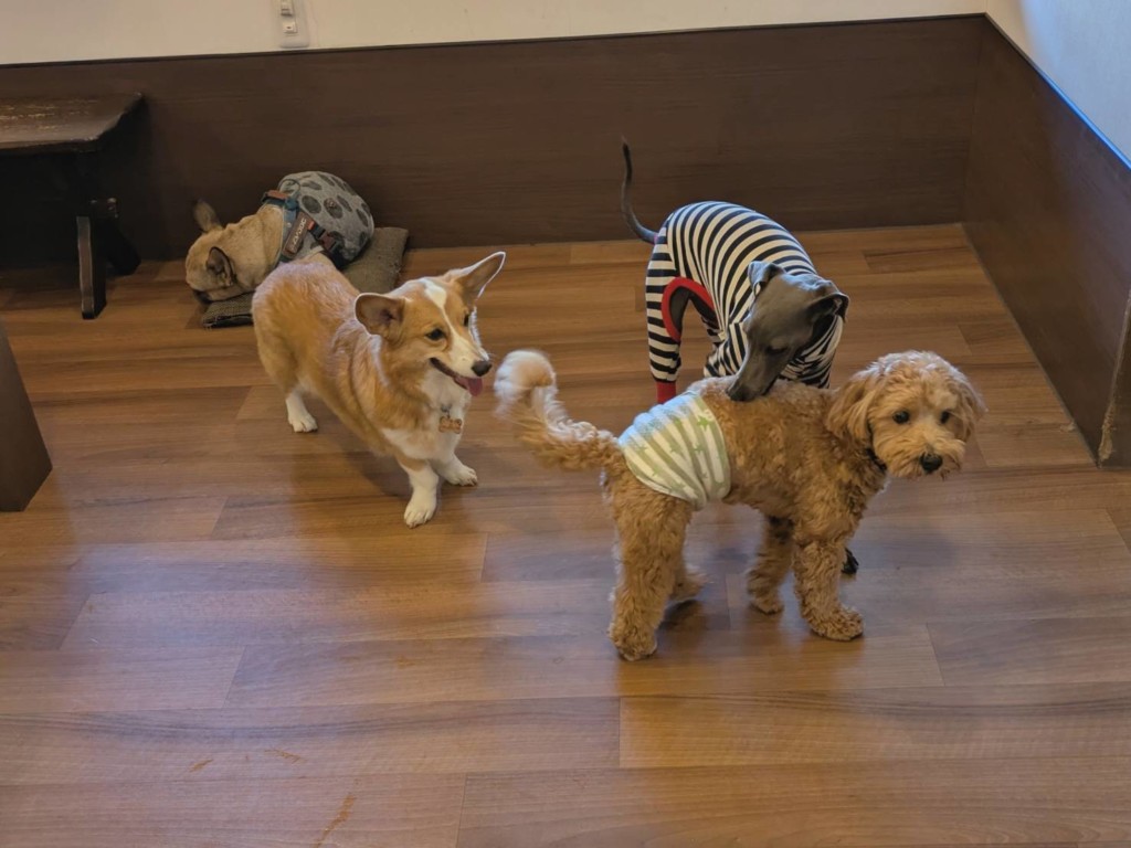 イタグレのグリージョくんとルーブルちゃんとシェリちゃん、