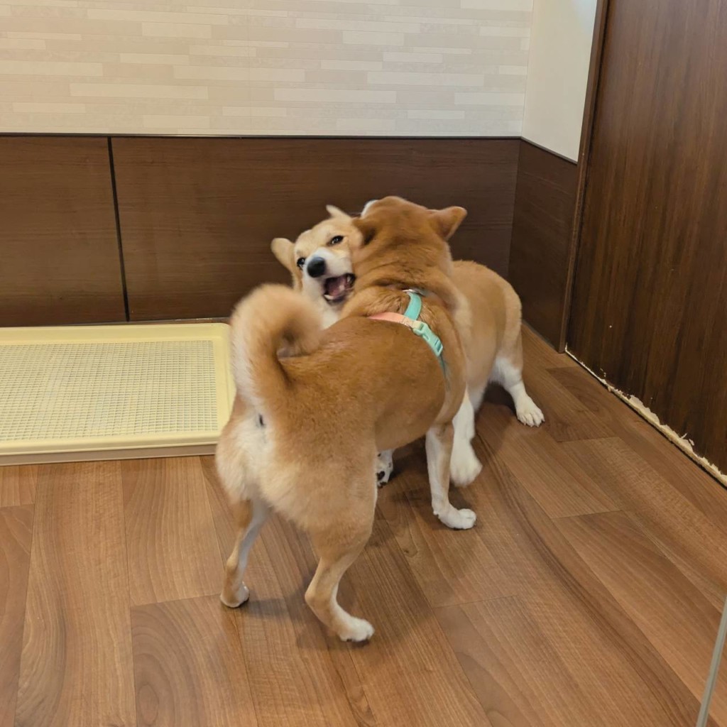 柴犬の陸くんと碧海くん、