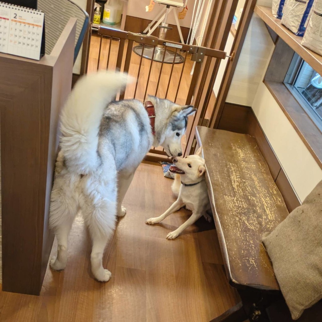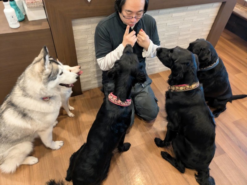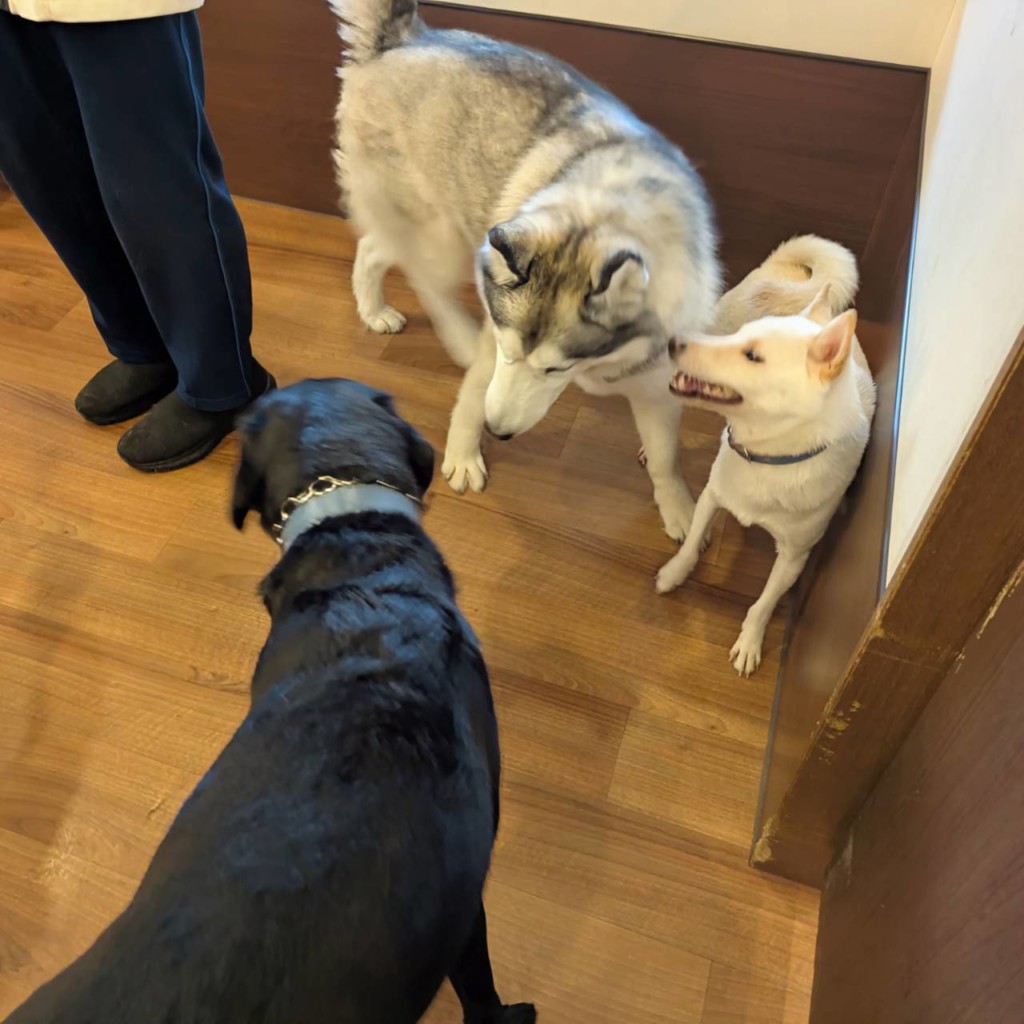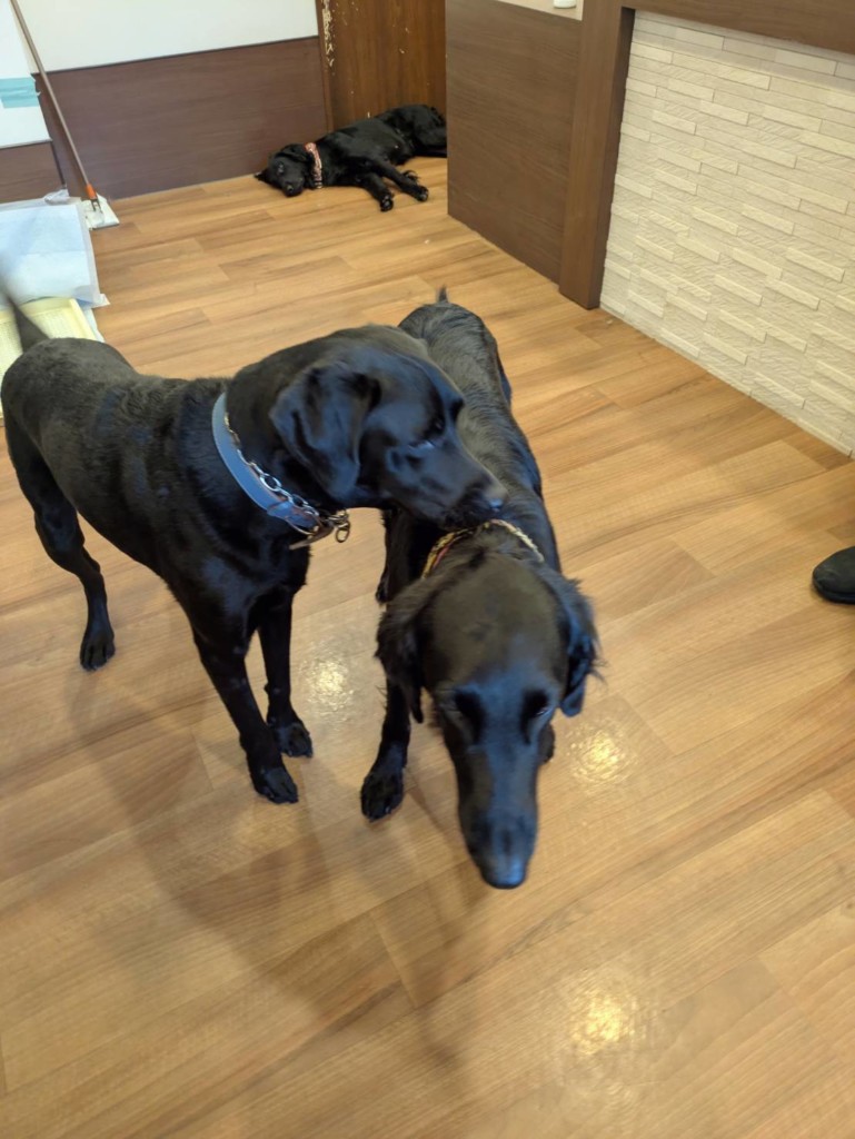 フラットコーテッドのリズィーちゃんとアナイスちゃん、