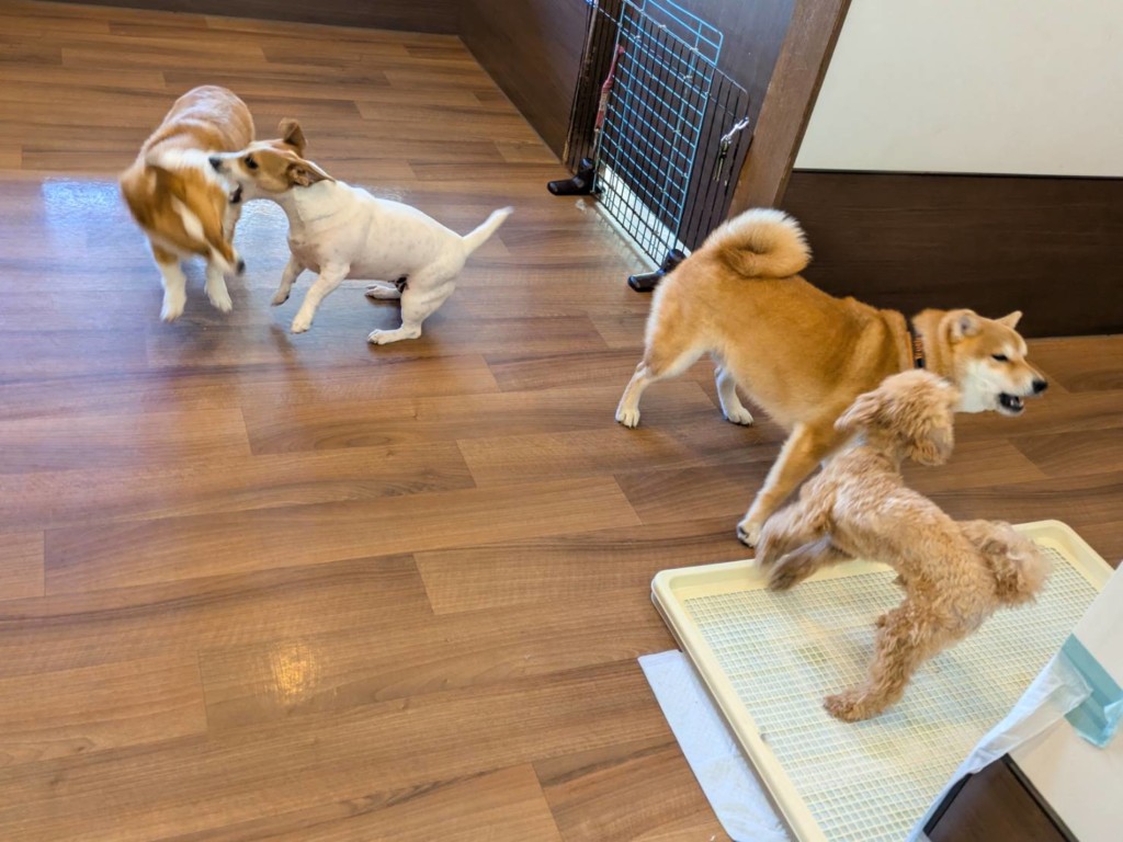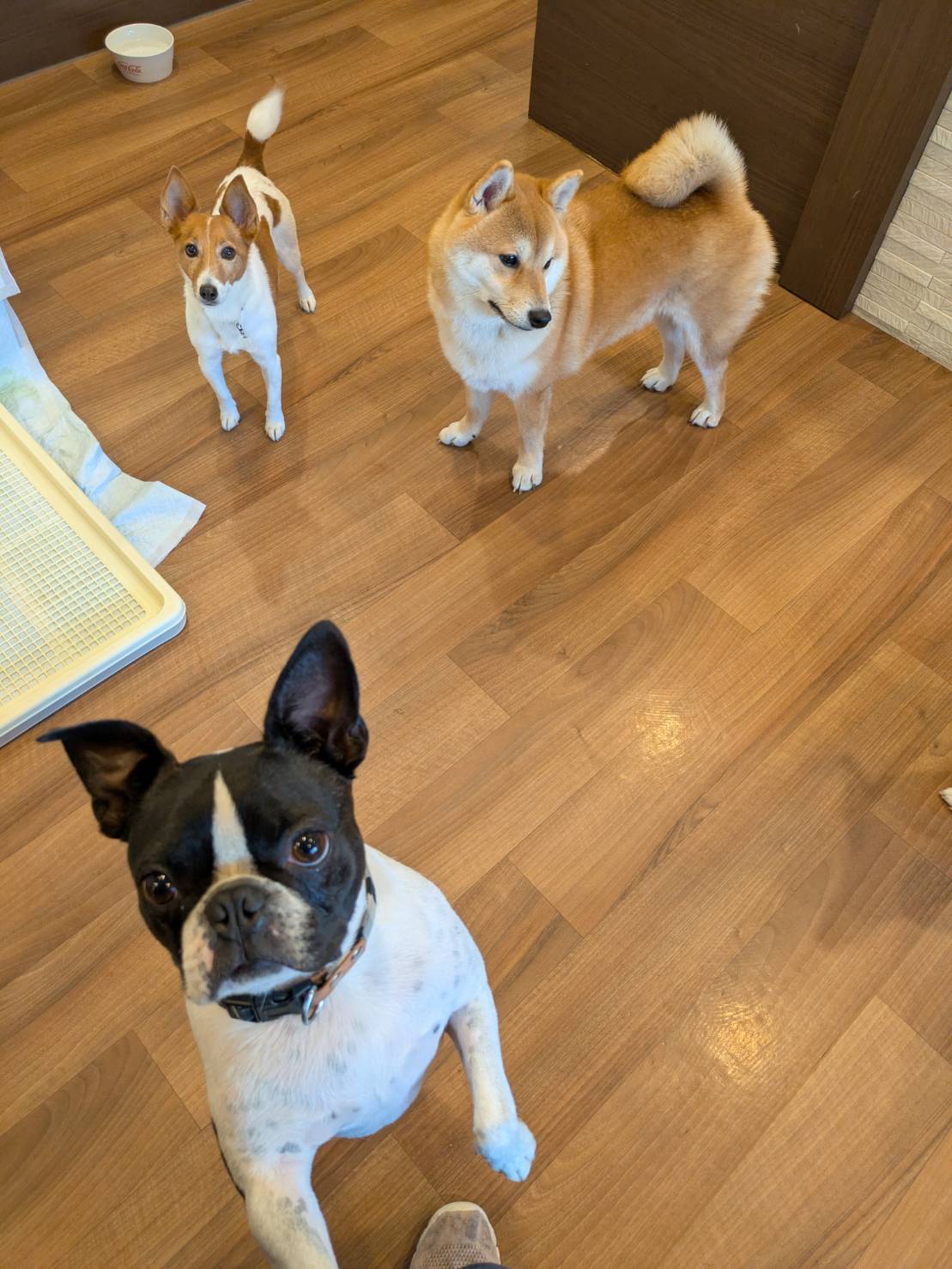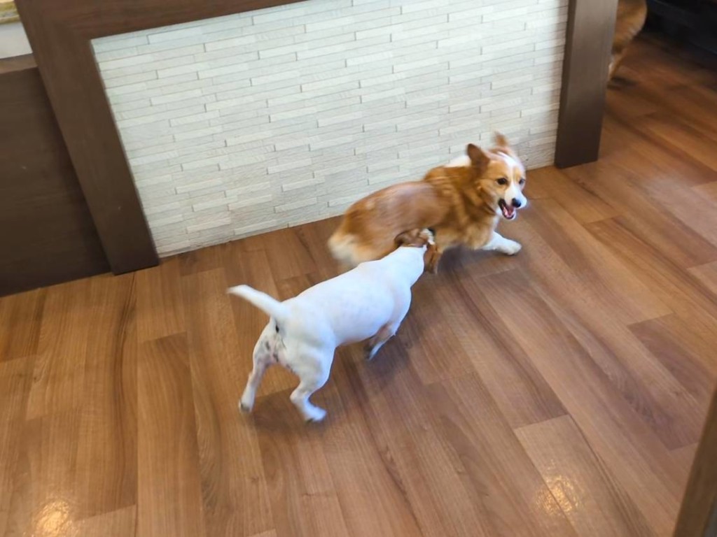 ジャックラッセルの小鞠ちゃんとオトちゃん、
