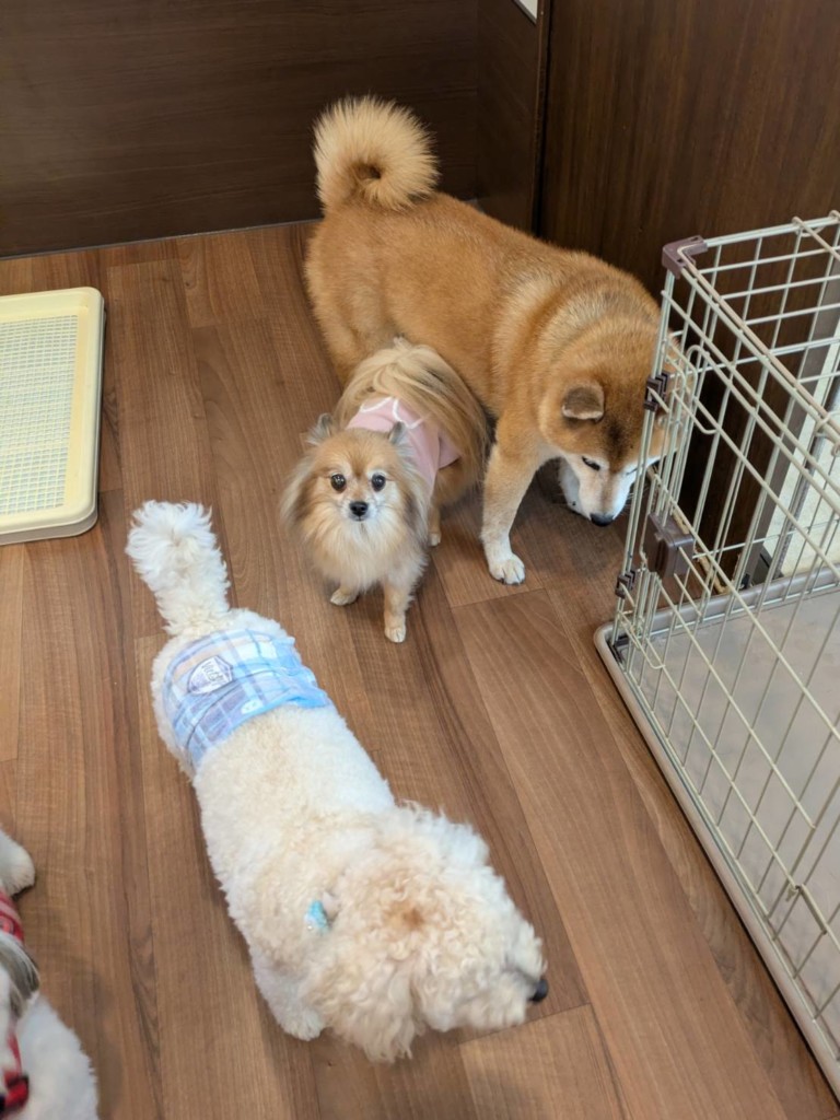 柴犬の豆助くんとまめすけくんとゴン太くんとナツちゃん、