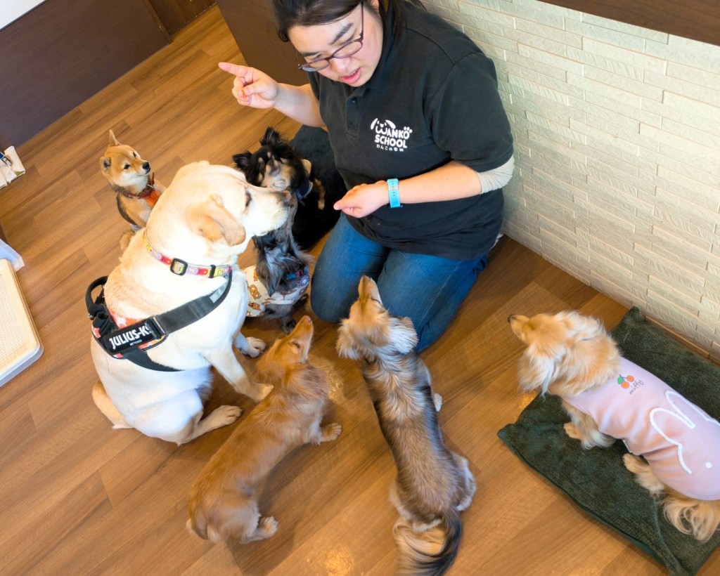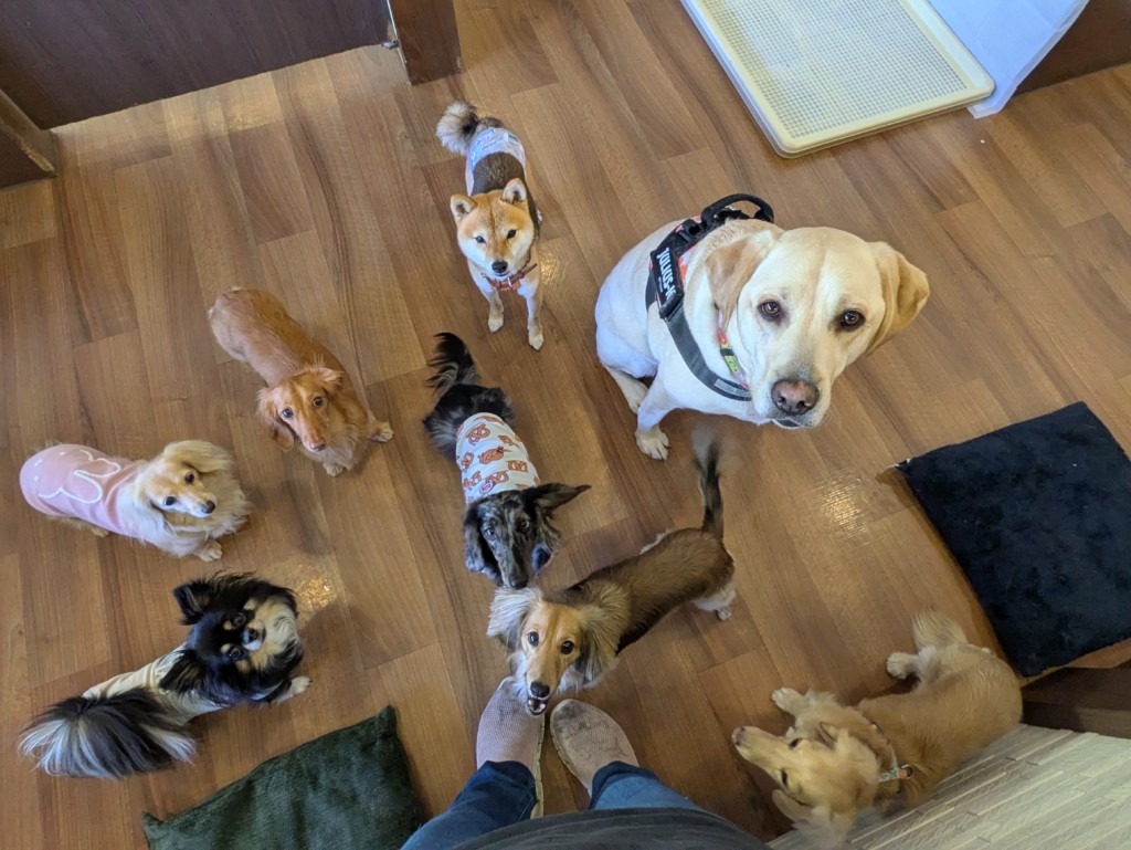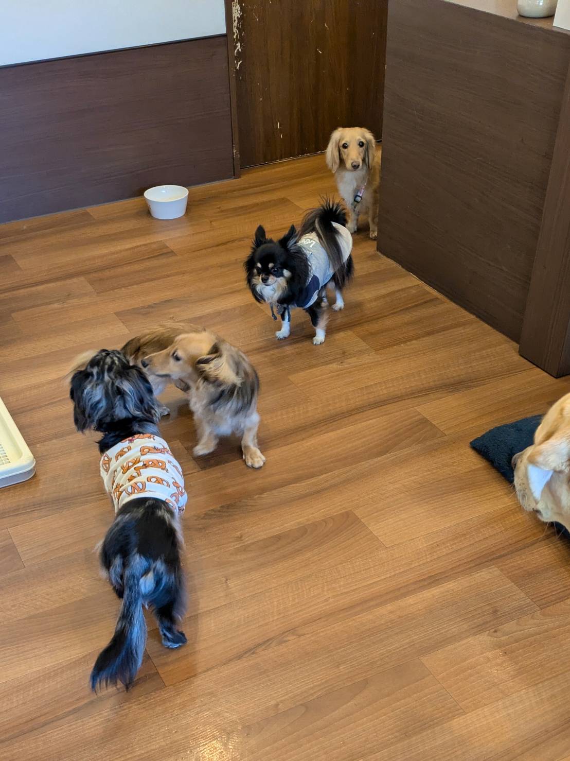 M.ダックスのルルーシュちゃんとクーちゃんとレアちゃんとこむぎちゃんとここなちゃん、