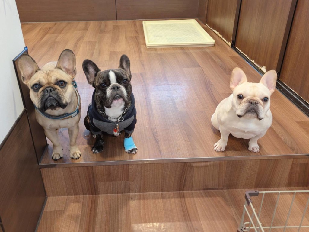 フレンチブルのみくたくんとガロくんとももちちゃんです。