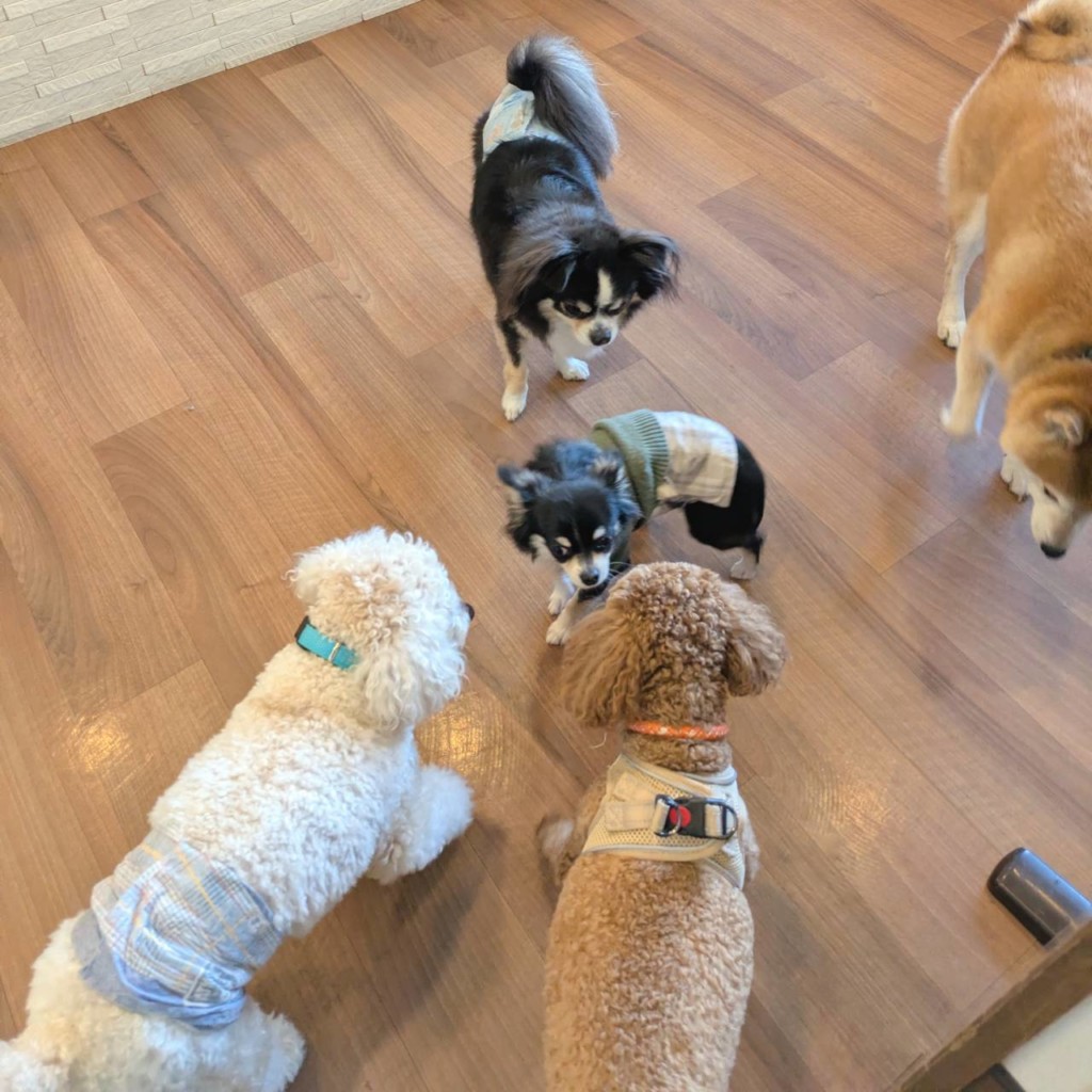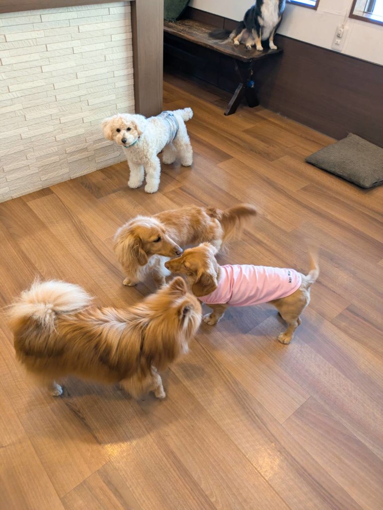 トイプーのジョイくんとハッピーくんとむぎちゃん、