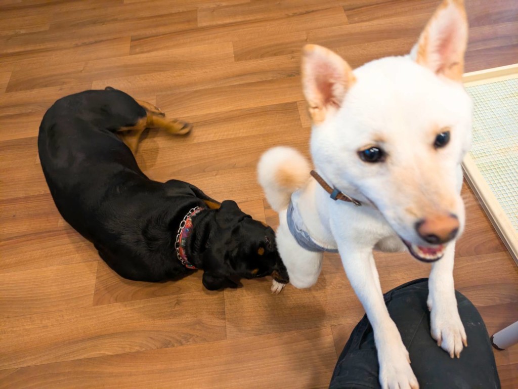 柴犬の楽ちゃんときなこちゃん、