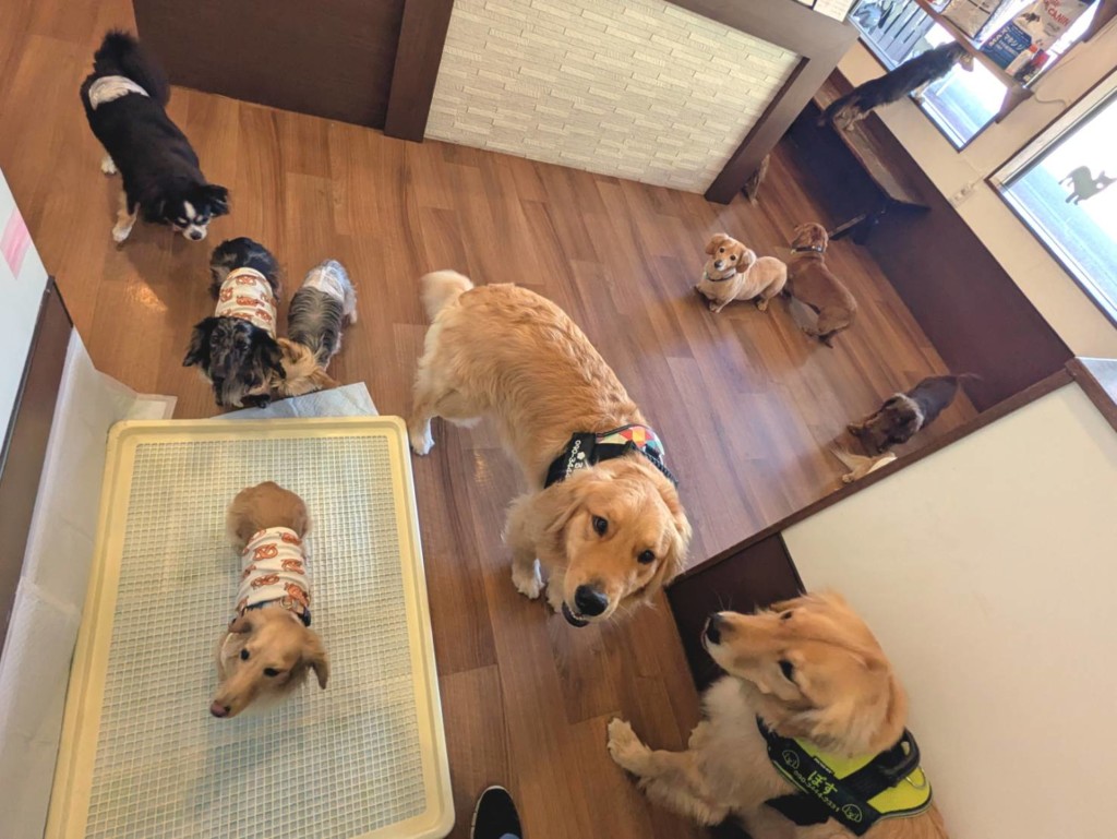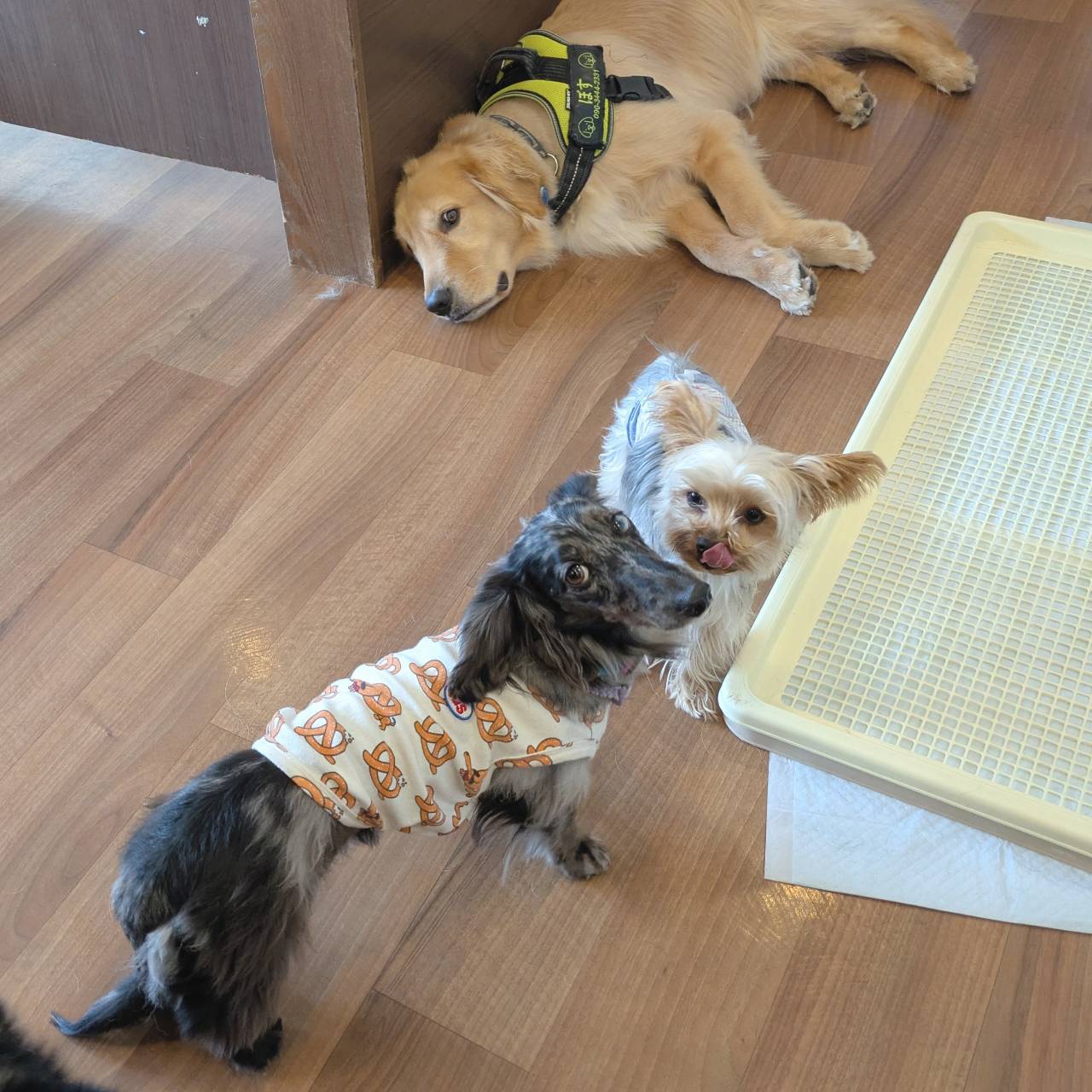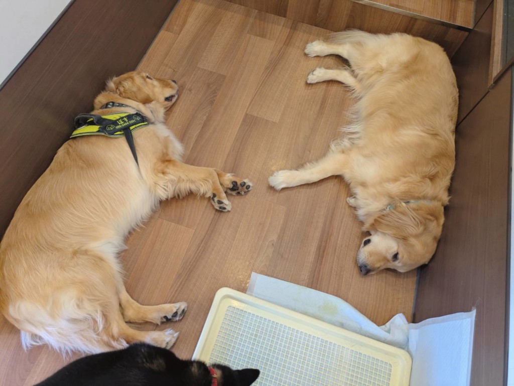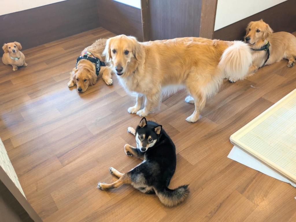 ゴールデンのルイちゃんとボスくんとつむぎちゃん、