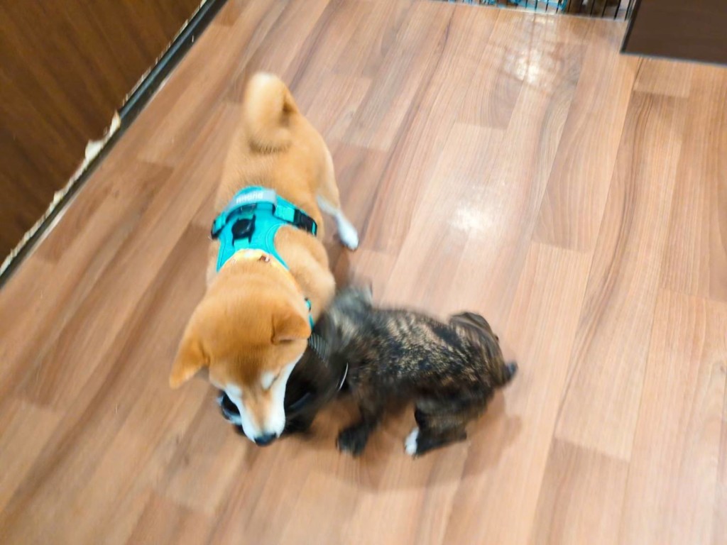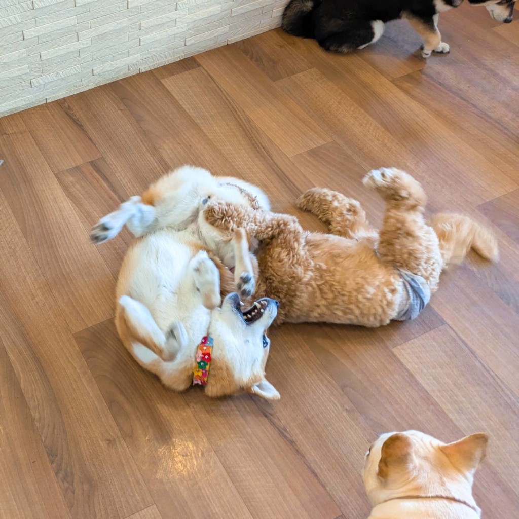 柴犬の碧海くんと福ちゃんと小鞠ちゃん、