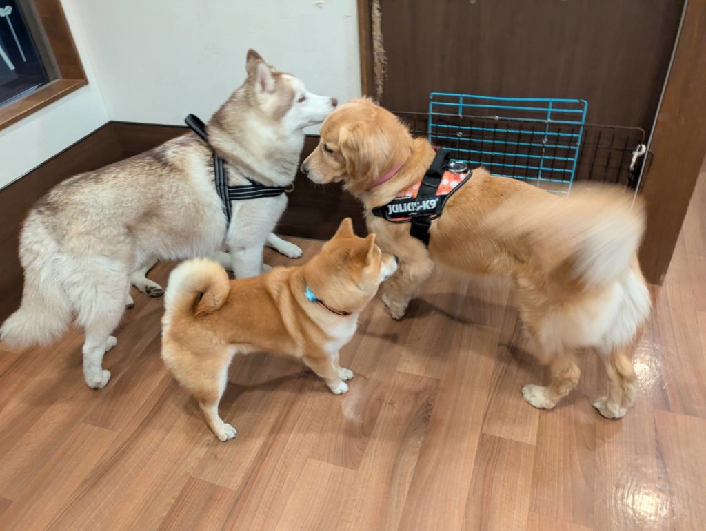 柴犬の豆助くんとおはぎくんとナツちゃんとゴン太くん、