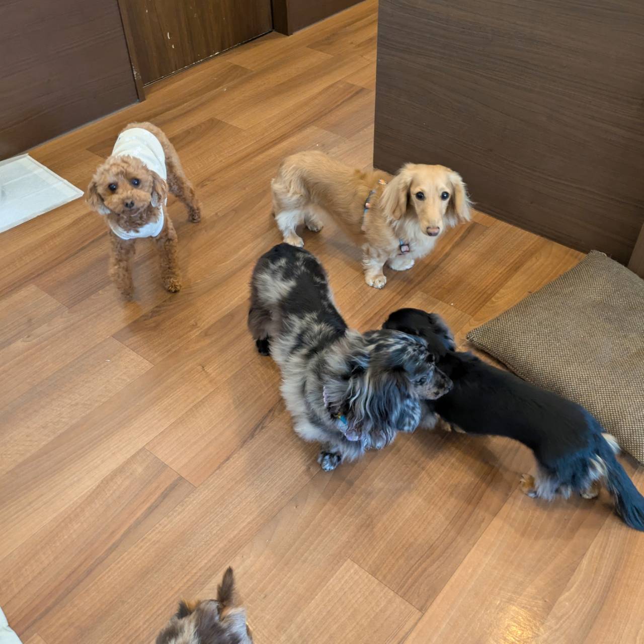 M.ダックスのルルーシュちゃんとレアくんとこむぎちゃんとララちゃんとロイくん、