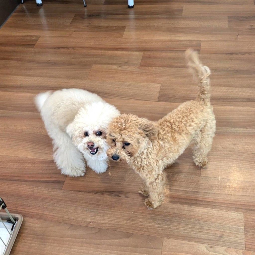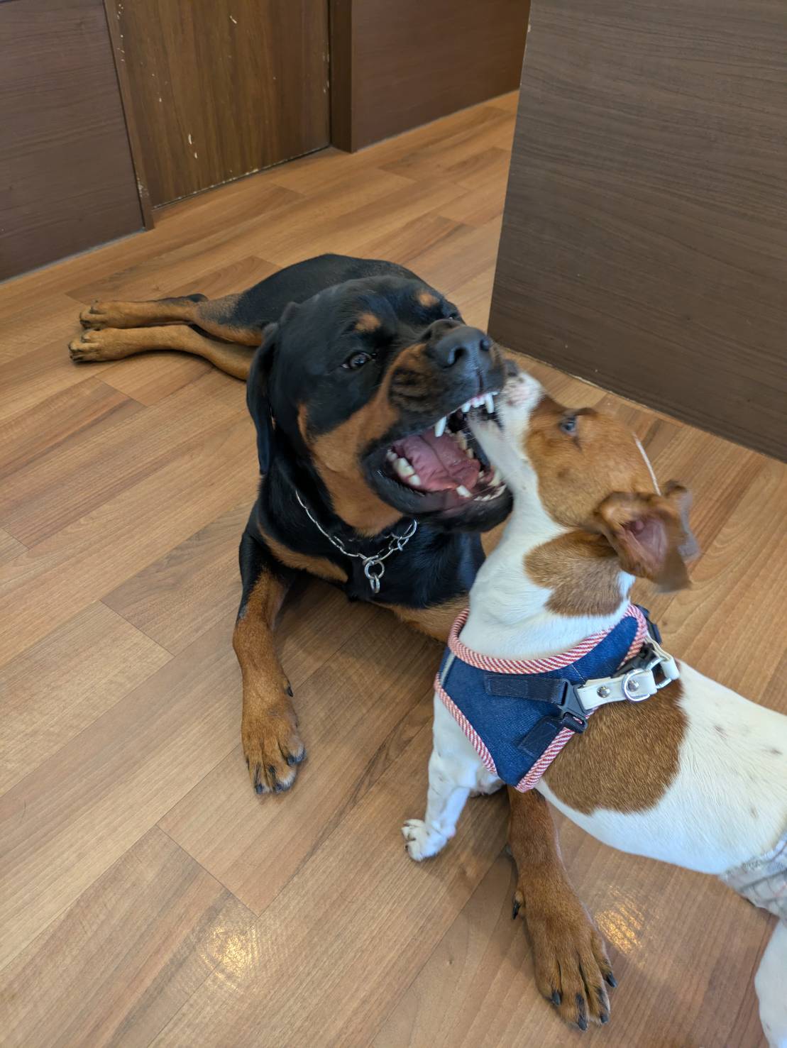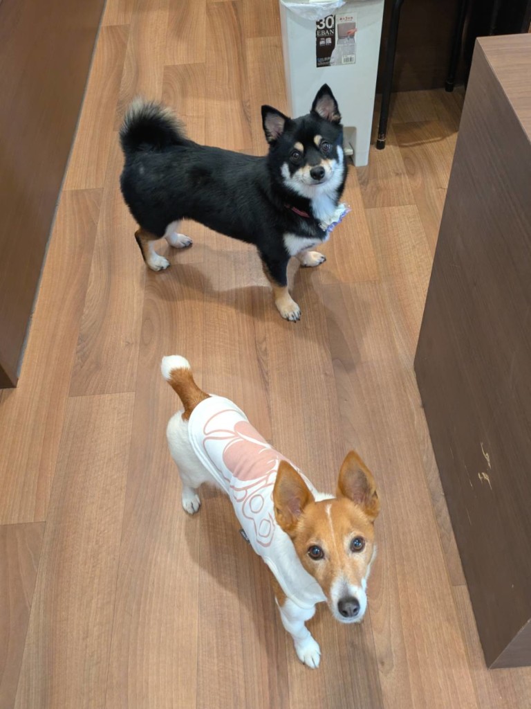 ジャックラッセルの小鞠ちゃんとセロリくん、