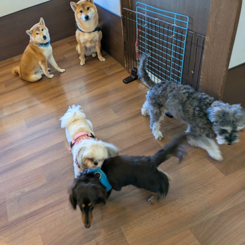 柴犬の豆助くんとおはぎくんとナツちゃんと天ちゃんです。