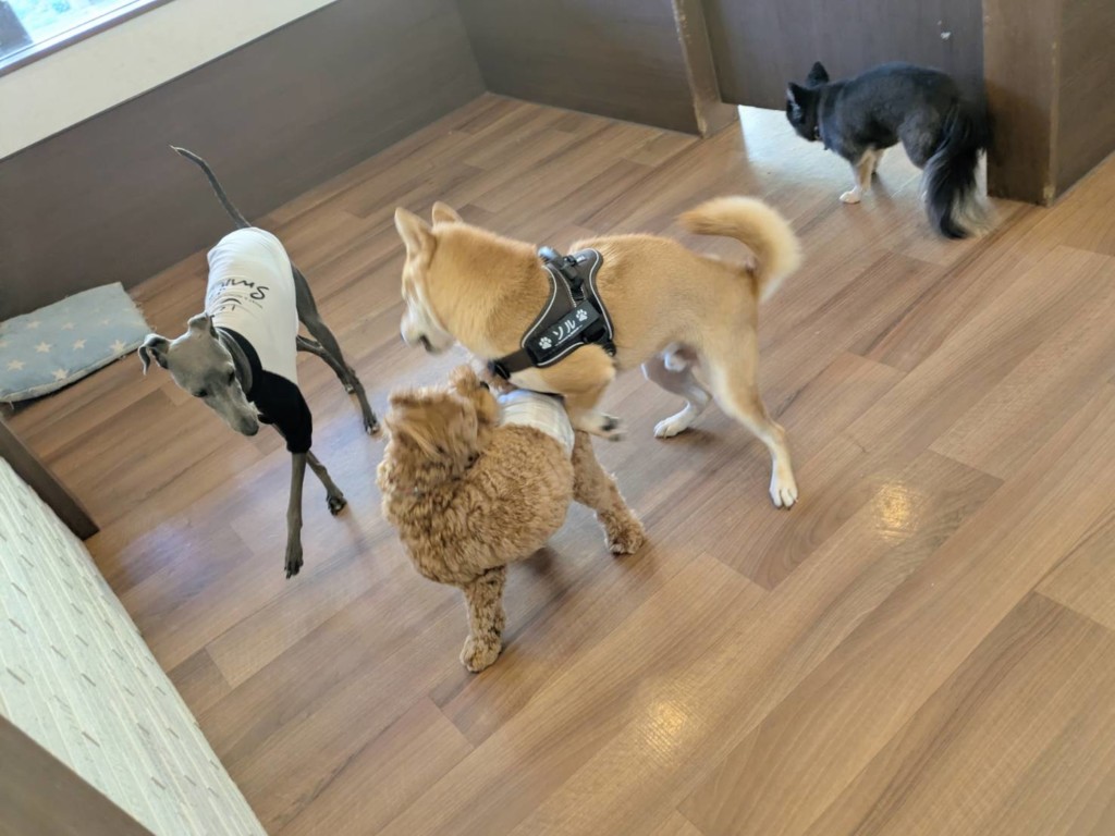 柴犬の陸くんと碧海くんと福ちゃんとソルくん、