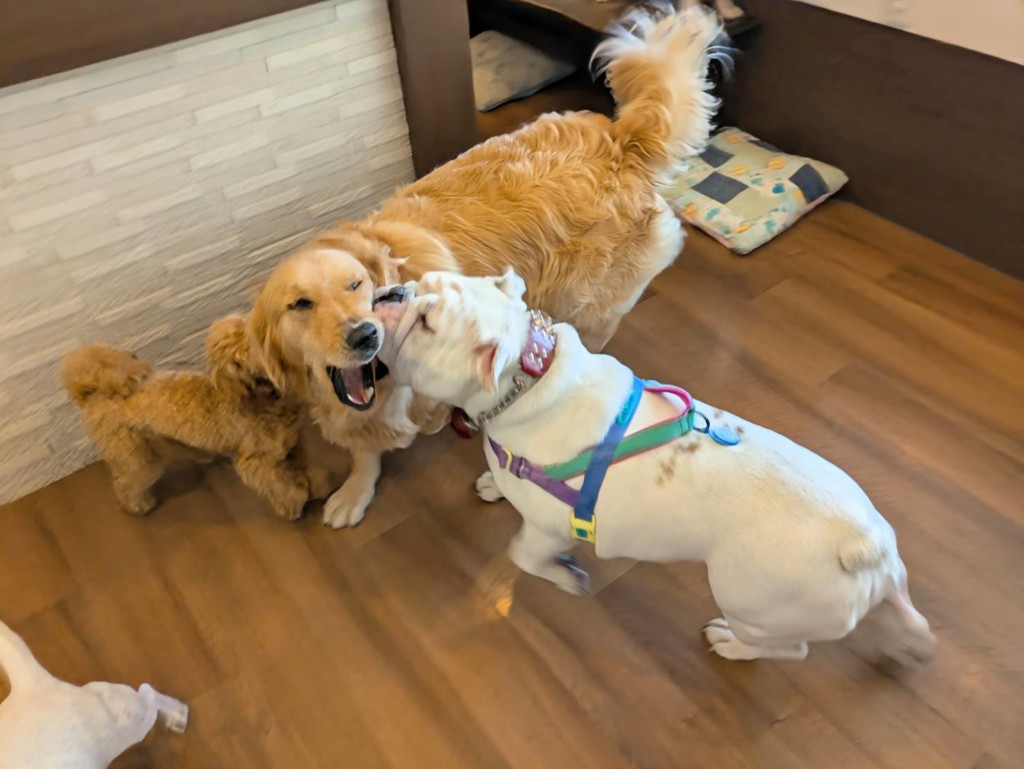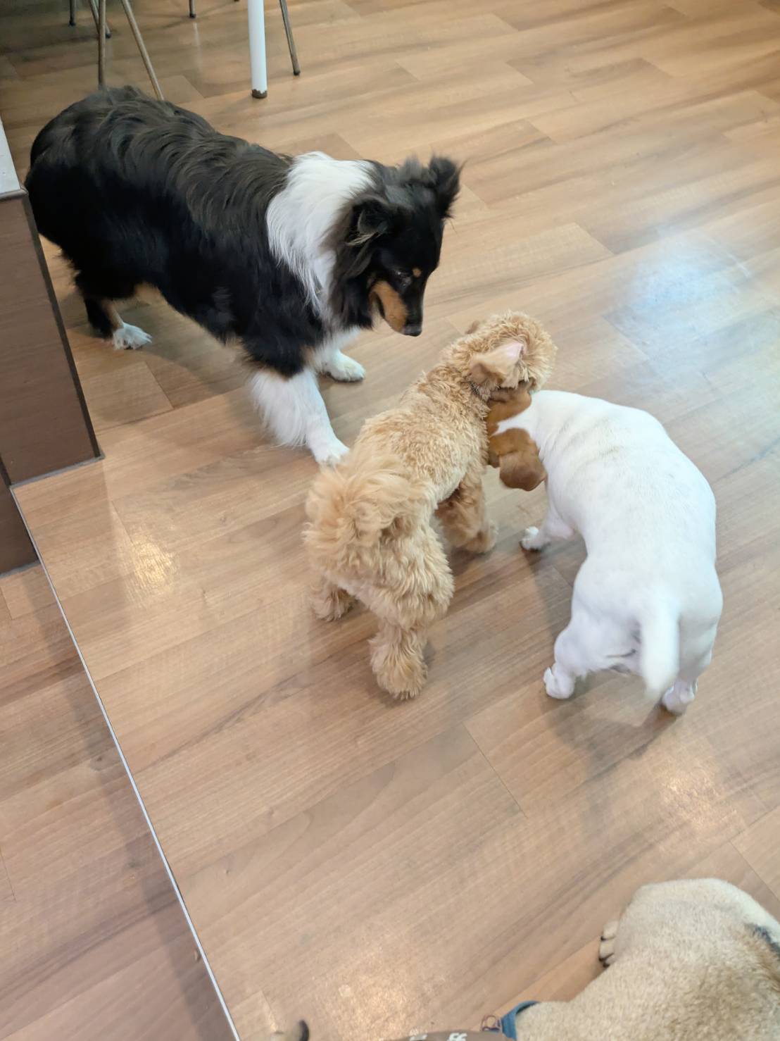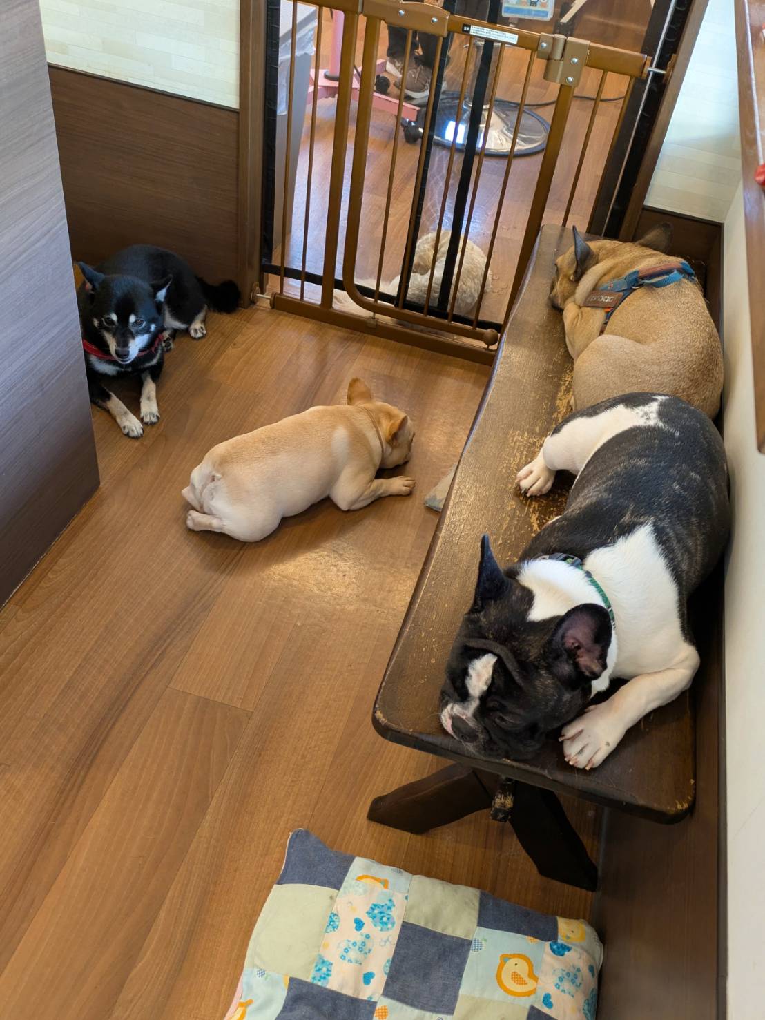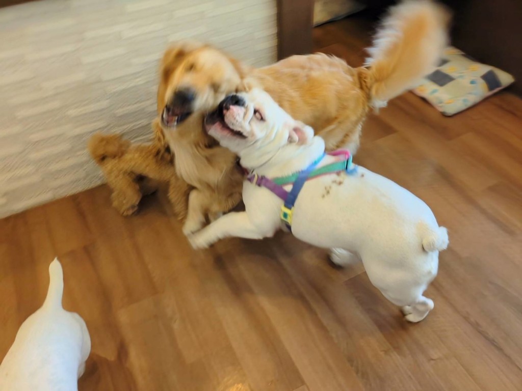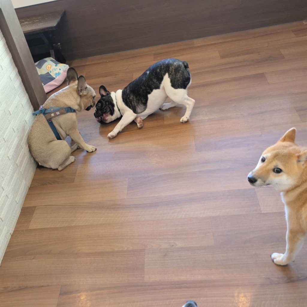 フレンチブルのガロくんとももちちゃんとチャーリーくん、