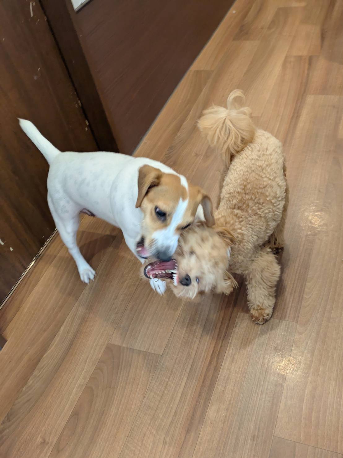 ジャックラッセルのオトちゃんとぽこちゃん、