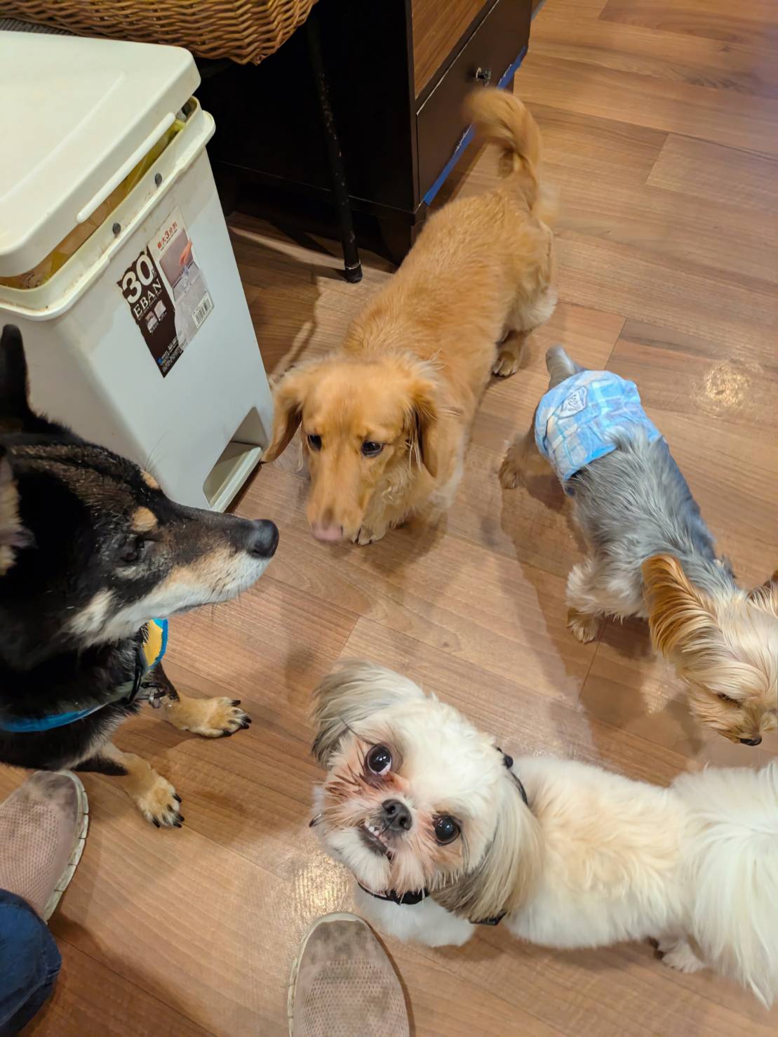 柴犬の豆助くんとおはぎくんとナツちゃんとてんちゃんです。
